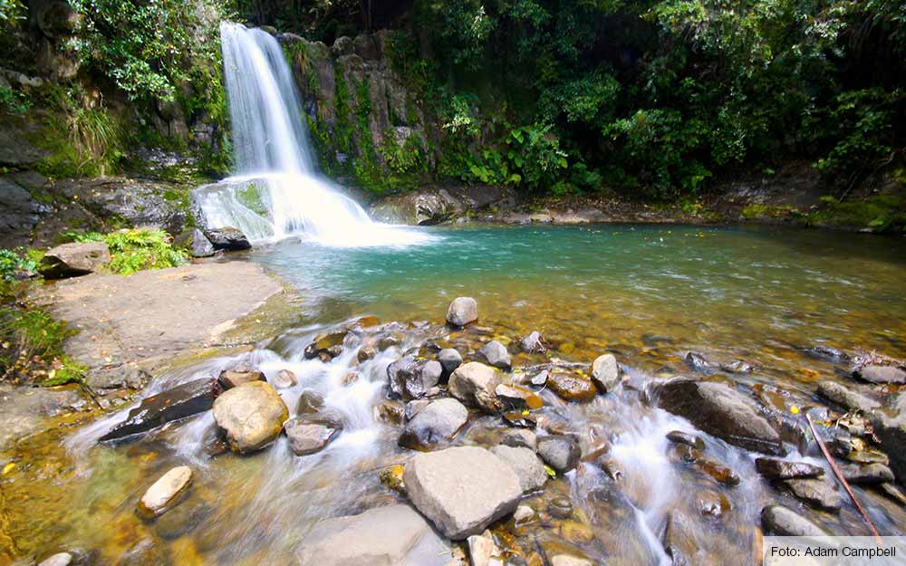 Als eerste bereik je de Waiau Falls, de perfecte plek om een frisse duik te nemen. Deze zes meter hoge waterval die eindigt in een meertje met zulk helder water, hier wil je gewoon zwemmen. Op weg naar de Waiau Falls passeer je nog een paar overgebleven kauri's, de grootste bomen ter wereld.